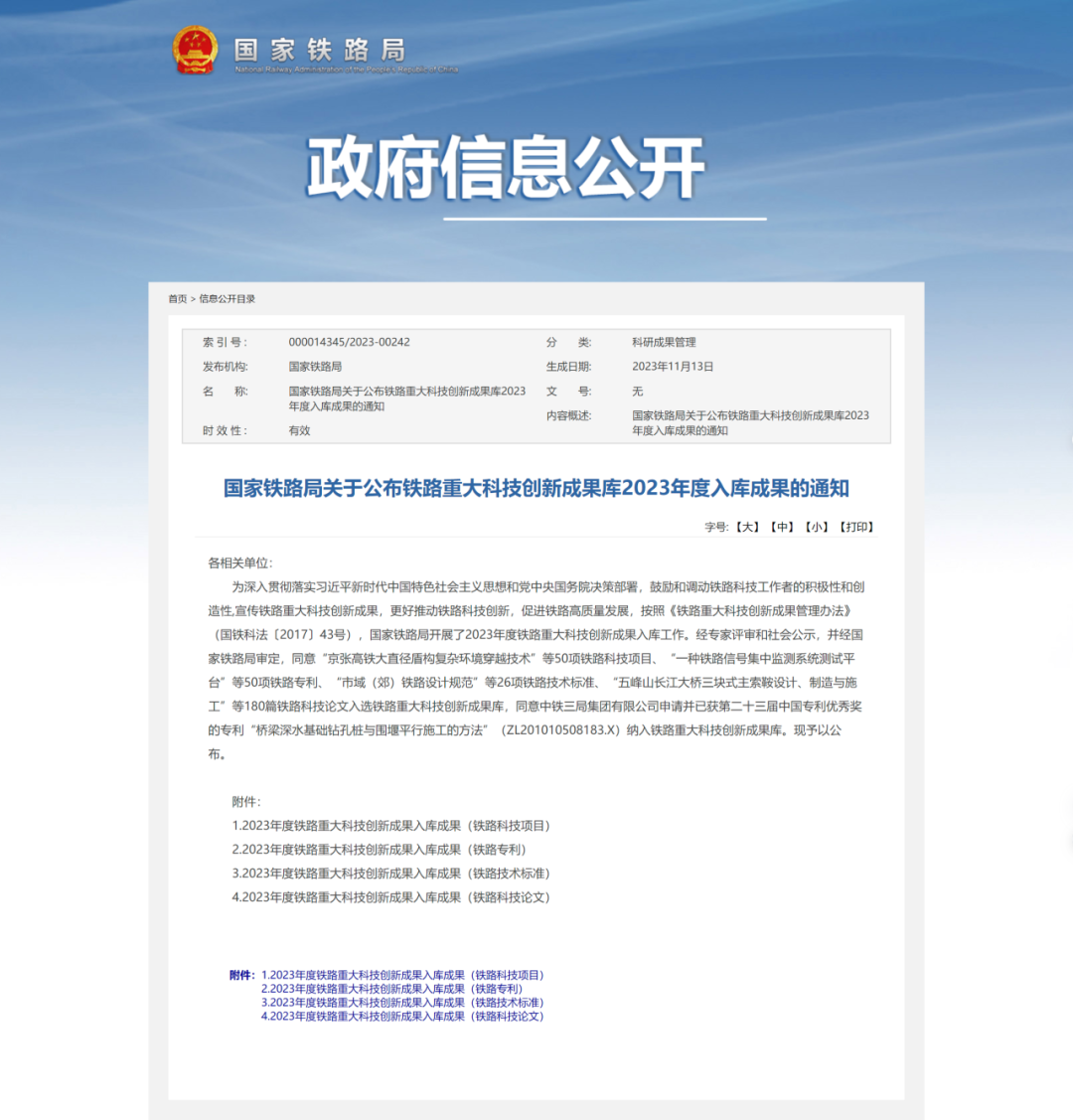 - 公司多项成果入库2023年度铁路重大科技创新成果库
