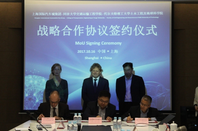 - 2017年10月16日,公司与上海国际汽车城集团、荷兰代尔夫特大学土木工程及地球科公司在汽车创新港签署战略合作协议。公司经理凌建明教授、上海国际汽车城集团总经理助理陈海林、荷兰代尔夫特理工大学土木工程及地球科...