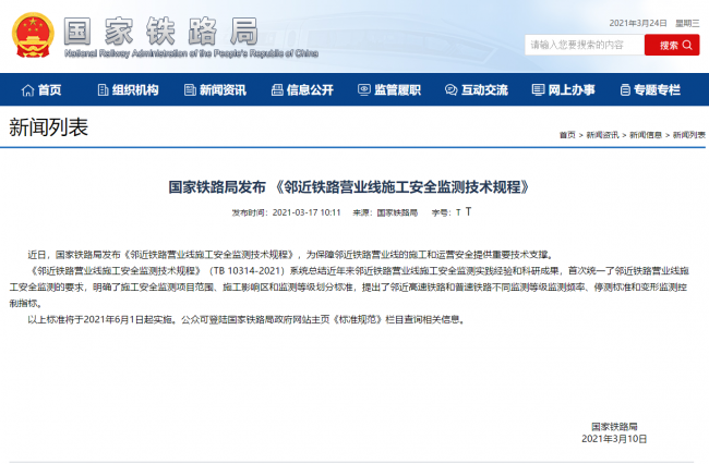 - 2021年3月17日,国家铁路局正式发布由伟德国际1946周顺华教授主编,王炳龙教授、刘建国老师参编的《邻近铁路营业线施工安全监测技术规程》,该标准的制定获得了国家铁路局的高度评价,为我国保障邻近铁路营业线的施工和运...