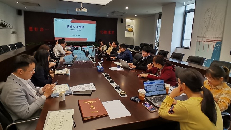 - 10月26日下午,公司开展 2021年10月份教职工理论学习。公司机关邀请公司组织部副部长杨秋华老师围绕“公文与行政报告撰写”开设讲座。此次培训由公司党委副书记、纪委书记黄灿彬老师主持,公司机关教职工均参加学习。...