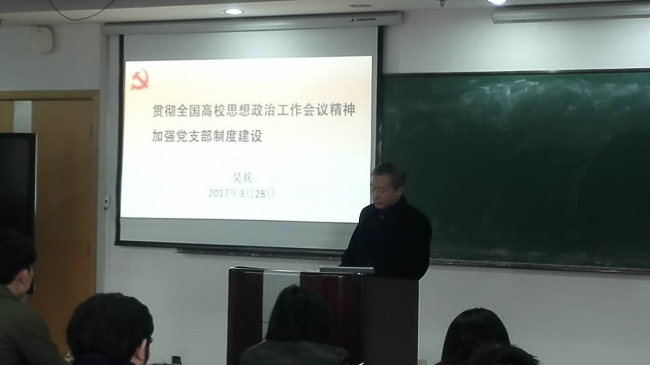 - 3月28日下午,党委书记吴兵同志上《贯彻落实高校思想政治工作会议精神 加强党支部制度建设》专题党课,公司各总支负责人、全体党支部书记参加党课学习。 吴兵同志解读了习近平总书记在全国高...