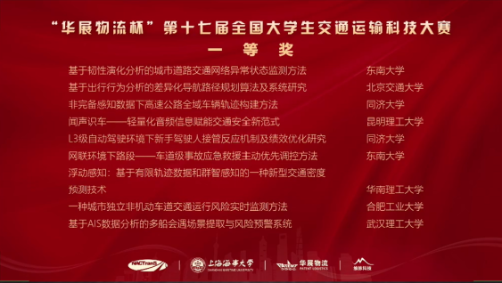- 2022年7月8日-10日,由中国交通教育研究会、教育部高等公司交通运输类专业教学指导委员会主办、由上海海事大学承办的“华展物流杯” 第十七届全国老员工交通运输科技大赛因疫情线上举行。公司推荐的参赛作品在大赛中喜获佳绩,共有6个项目获奖,其中一等奖、二等奖各3项。公司员工的参赛作品和答辩表现得到专家评委的高度评价。第十七届全国老员工交通运输科技大赛以“数智交通、低碳运输”为主题,共有“交通工程与综合交通”...