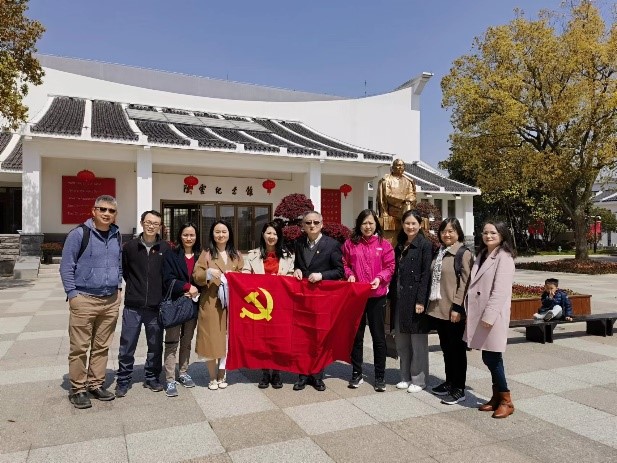 - 2023年3月28日,中共伟德国际1946伟德国际1946委员会教工第四支部与工会联合组织参观了陈云故居暨纪念馆。怀着崇敬的心情,我们缓步走进了纪念馆的序厅,序厅的正前方有一尊高大的用汉白玉雕塑成的陈云全身塑像。塑像刻画的陈云同志身穿中山装,右手挎着风衣、左手摆在身后,面带微笑却又目光炯炯,慈祥又不失威严,让人马上联想到他生平的高风亮节。大家穿着整齐,兴致勃勃地在此集体留影,在党旗映衬下,更显得精神抖擞。展厅...