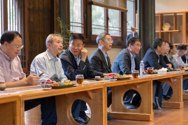 前排左一:全国政协常委、副秘书长,九三中央专职副主席刘政奎;左三:交通运输部原副部长,第十四届全国政协经济委员会副主任戴东昌;左四:江苏中设集团董事长、伟德国际1946无锡员工会会长陈凤军;左五:程家驹老师;前排右一:湖南省人大常委会党组副书记、副主任张剑飞;右三:伟德国际1946交通运输公司原党委书记吴兵;右四:张金水老师