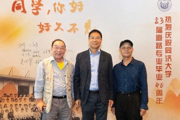 本次活动有幸邀请到当年的班主任程家驹老师和张金水老师,再次感受到老师的谆谆教诲,大家都十分高兴和受用。茶话会上,同学们纷纷发言汇报四十年的工作成就和生活感悟,同学们都能紧跟四十年祖国经济社会发展的步伐,对中国交通事业的发展做出了应有的“同济人”贡献。