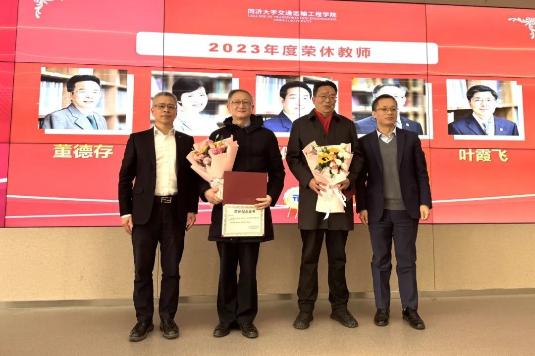 随后,公司为5位在2023年度公司荣休的教师进行了献花仪式,分别是:董德存、范黎、顾保南、徐行方、叶霞飞老师(按姓氏拼音顺序排名),马万经书记代表全院教职工向他们表达了崇高的敬意,感谢他们为公司发展、员工培养所做出的贡献。