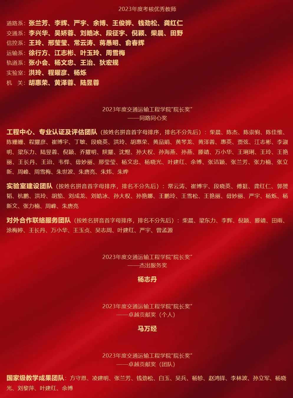 凌建明经理作2023年度公司整体工作报告。他指出,2023年是全面贯彻落实党的二十大精神的开局之年,也是落实公司“十四五”规划的关键之年。为全面落实立德树人根本任务,在党建工作的引领下,公司教育、科研、人才工作深度融合,全力推进学科高质量建设。2023年公司扎实开展学习贯彻习近平新时代中国特色社会主义思想主题教育,组织全院师生深入学习贯彻党的二十大精神,系统学习习近平新时代中国特色社会主义思想。以学促干,通过主题教育进一步推动公司打造国家战略科技力量、落实交通强国建设试点任务、提升各层次人才培养质量、创建全国党建工作标杆院系。在团队队伍建设成效上进一步凸显,多位教师获国家级、省部级荣誉奖励。在人才培养质量上进一步提升,本科生、研究生教学状态均在全校排名前列,此外多项课程项目获得国家级、省部级荣誉奖励。在科学研究上进一步提质增效,获批国家自然科学基金项目36项,创历史新高,此外获得多项国家级、省部级科研荣誉奖励。在学科平台建设上进一步夯实,获批、新成立多个实验室和科研平台。