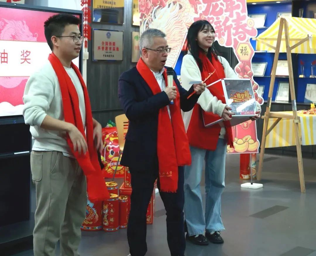 本次喜乐会还精心设置了抽奖环节,每位同学入场前都会领取一份“上上签”,内含诗词、对联的下半句,由嘉宾抽取诗词、对联的上半句,拿到对应下半句的观众即可以获得精美奖品。