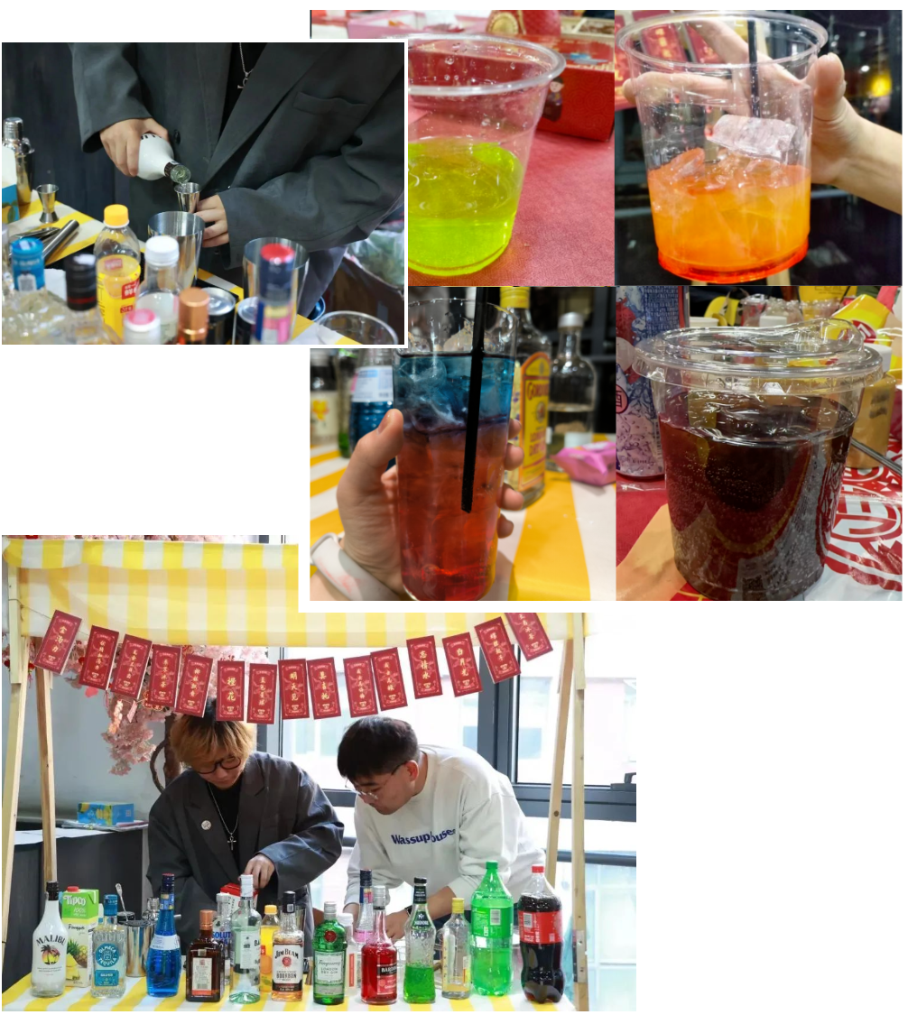 此外,本次喜乐会现场还设置了调酒区,邀请“资深”调酒师张韫博同学和王乾林同学为大家现场调酒。