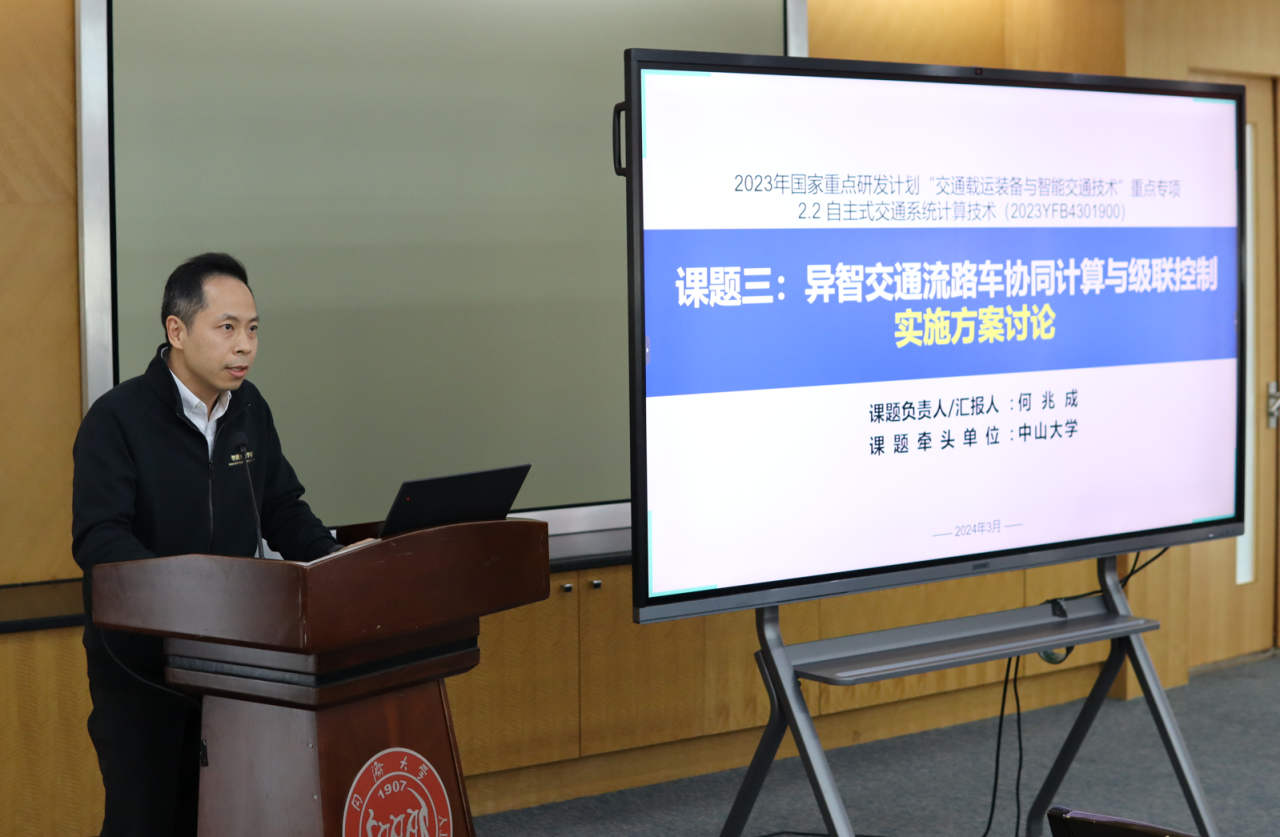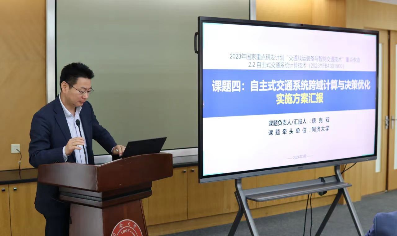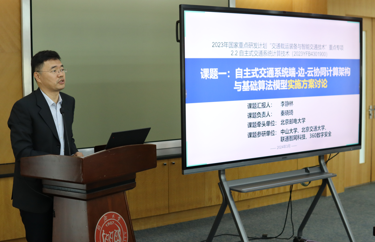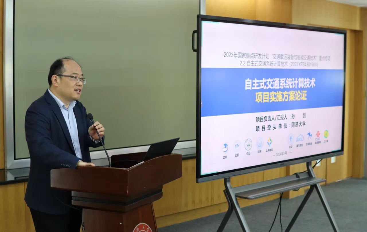 会上,项目负责人孙剑教授汇报了项目实施方案,各课题负责人北京邮电大学李静林教授、北京航空航天大学丁川副教授、中山大学何兆成教授、伟德国际1946唐克双教授、上海电科智能系统股份有限公司陈红洁董事分别汇报了课题一“自主式交通系统端-边-云协同计算架构与基础算法模型”、课题二“多载运装备交互计算与运动控制”、课题三“异智交通流路车协同计算与级联控制”、课题四“自主式交通系统跨域计算与决策优化”、课题五“自主式交通系统计算平台集成与示范验证”实施方案,从课题背景与研究目标、研究内容与技术路线、成果形式与测评方式、课题组织与进度安排等方面对项目的实施方案进行了详细介绍。