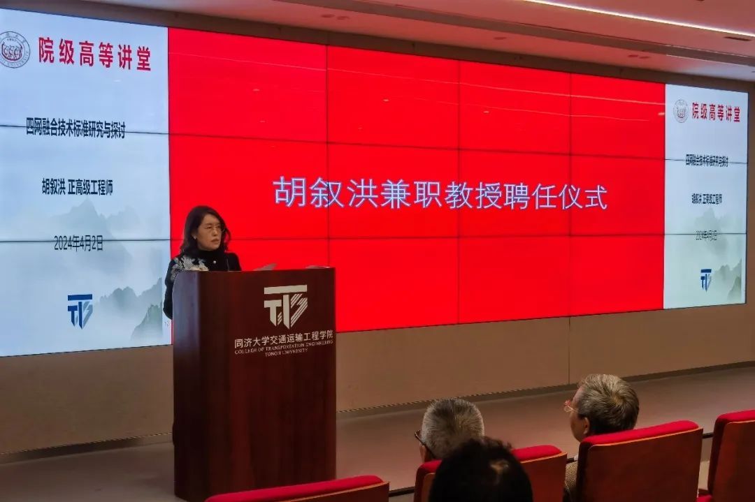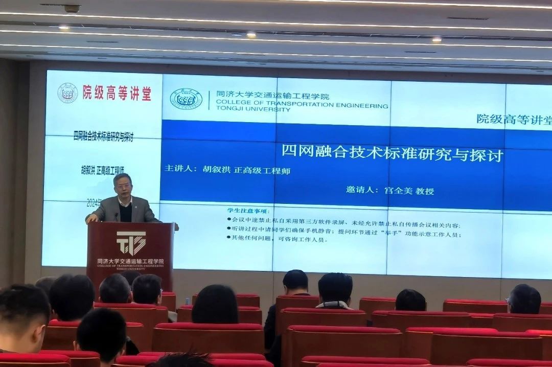 聘任仪式结束后,胡叙洪教授受邀“同路人”学术论坛,围绕“轨道交通四网融合技术标准研究“主题,向在场师生分享了他的一些感悟和思考。胡教授介绍了四网融合的发展政策与目标要求,四网融合是《交通强国建设纲要》中的重点任务之一,目标是推动城市内外交通有效衔接,推动干线铁路、城际铁路、市域(郊)铁路融合建设,并做好与城市轨道交通衔接协调,构建运营管理和服务“一张网”,实现设施互联、票制互通、安检互认、信息共享、支付兼容,为旅客提供一体化的出行服务;胡教授还分析了东京、纽约以及我国上海、杭州、粤港澳大湾区等国内外区域轨道交通四网融合的经验与存在的问题,提出了四网融合的技术及其要点,并针对目前四网融合存在的体制机制制约多、多头规划统筹难、标准体系兼容难等问题,提出要继续完善区域协同、强化规划联动、注重效率与效益等建议。此外,在构建四网融合技术的相关标准制定方面,胡教授提出要结合城市及区域的空间规划、综合交通战略规划等需求,在网络规划深度、线路规划及其标准、设备选型和运营管理等不同层面制定对应的标准体系建设方法。