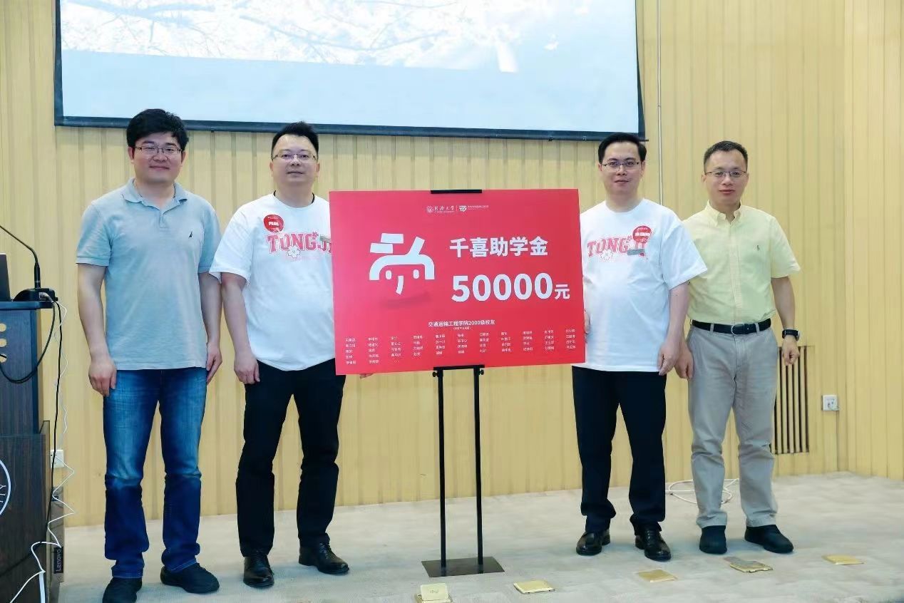 我们的助学金是每年5万元,与公司签了第一期 10年的捐赠协议,每年6月份支付。我们交运2000级同学也在此保证,我们会按时、按量履行我们的捐赠承诺。我们也知道,这一份助学金金额微小,对公司、公司发展的支持只是杯水车薪、微不足道。但我们也相信,积小善为大德,每一份支持都会如同涓涓细流,终将汇成江海,共同创造我们美好事业、美好生活。