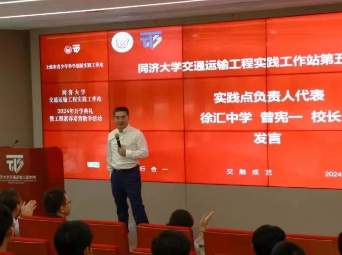 实践点负责人代表、徐汇中学董事长曾宪一对伟德国际1946交通运输工程实践工作站多年以来为高中生工程素养培育与创新实践活动所作出的指导与支持表示诚挚感谢。他表示,同学们选择伟德国际1946交通运输工程实践工作站必将收获满满,希望同学们能够通过工作站的学习,完成从兴趣到智趣再到志趣的成长,早日实现成为工程师,科学家的梦想。
