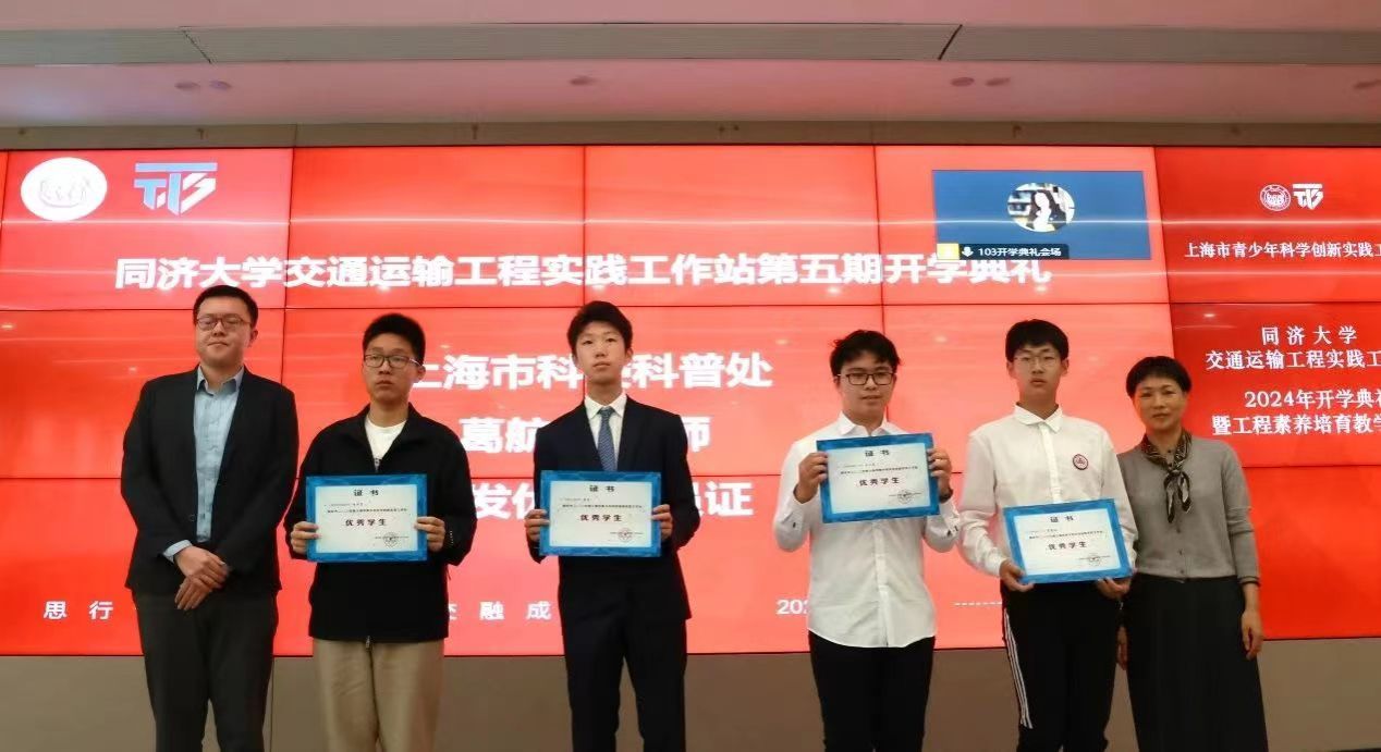 上海市科委科普处葛航铭老师为往届优秀学员代表颁发证书。