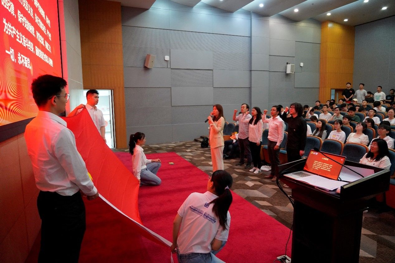 会议的最后黄泽蓉带领预备党员在党旗下进行宣誓仪式,结业仪式在铿锵有力的誓词中圆满结束。