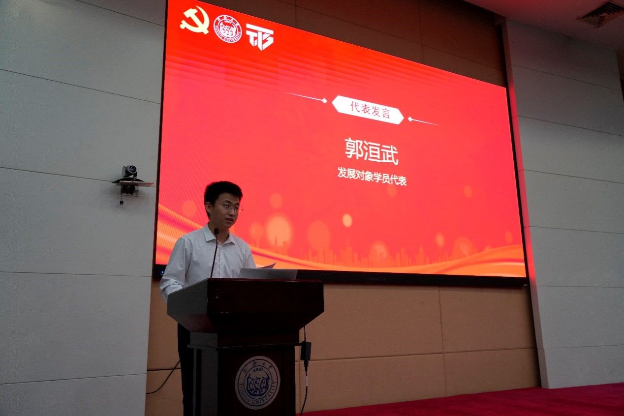 发展对象优秀学员代表郭洹武感谢公司和公司组织了本次培训,他通过分享自己向党组织靠拢的过程和疫情期间在部队的亲身经历勉励积极分子要坚定入党初心,勇担时代使命,争当模范做好表率。参加此次培训不仅深化了他对党的认识,提升了党性修养同时也让他结识了志同道合的良师益友。他表示将以更加饱满的热情、更坚定的信念,为实现中国梦而努力奋斗,为推进强国建设、民族复兴作出应有的贡献。