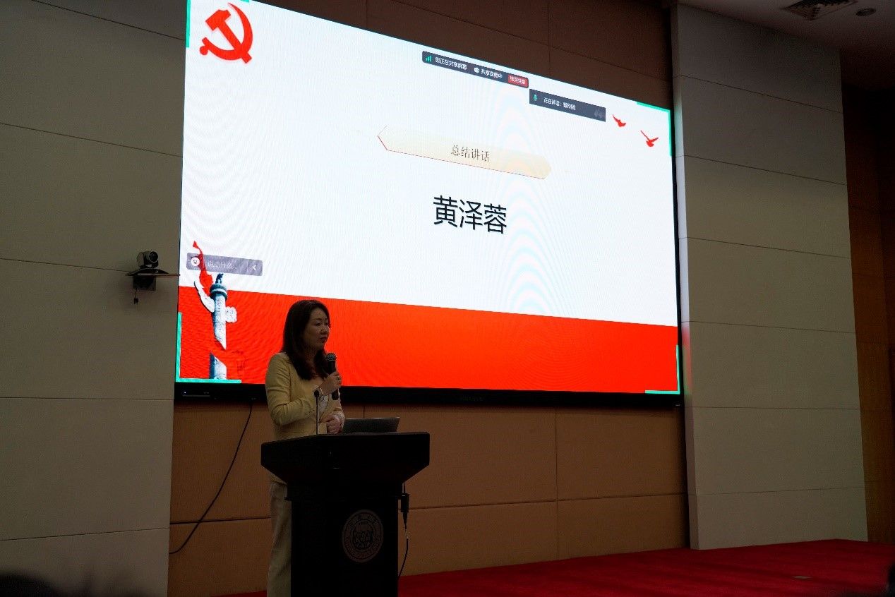 黄泽蓉总结讲话,她祝贺全体毕业生党员即将踏上人生新的征程同时提出希冀:一是要牢记党员身份,不忘初心牢记使命,努力成为担当民族复兴大任的时代新人;二是要强化党性修养,遵守党纪党规,传承同济文化,爱岗敬业,续写更多的“同济故事”;三是要笃学善思、敢于创新,踊跃到基层一线和艰苦的地方干事创业;四是要拥有世界眼光,以开放之我展现时代担当,以开拓进取服务社会,以聪明才智贡献国家。