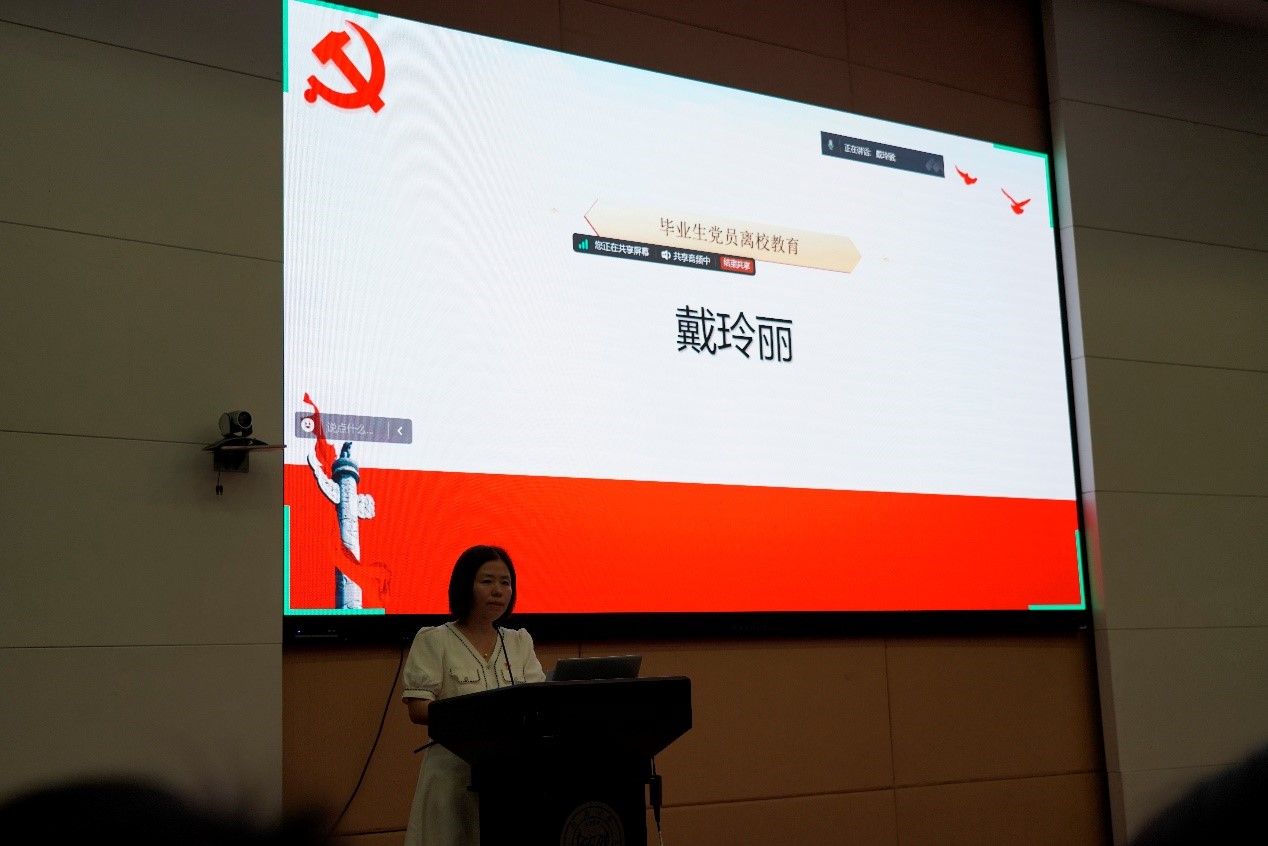 戴玲丽对毕业生党员离校所涉及的事务与相应流程进行了详细介绍。首先,她宣读了校组织部给毕业生党员的一封信,转达了公司对毕业生党员的殷殷嘱托和期望。戴老师强调了党组织关系转接的重要性、宣讲了党组织关系转接的流程和常见问题解答,并要求各支部书记当好第一责任人督促毕业生党员做到党组织关系转接信息核实到位、程序规范到位、告知提醒到位,服务好员工党员在校的“最后一公里”。