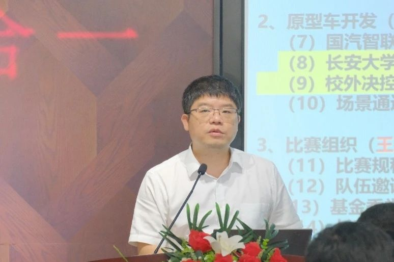 成绩公布后,裁判委员会徐志刚教授详细介绍了第二届 OnSite 算法挑战赛季后赛-虚实融合赛的筹备情况。徐志刚教授强调举行虚实融合自动驾驶实车挑战赛的目的是促进实车算法性能提升,做到“以实验虚”、“以实优虚”;分别从筹备工作总体进展、软件开发进展、原型车开发进展与比赛组织进展四个方面进行了汇报。