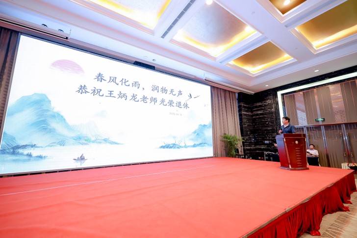 仪式上,王炳龙老师的第一届毕业生代表杜艳辉走上台前致敬,并跟师生们分享了那些与王老师共同度过的点滴时光,他代表全体员工祝福王老师未来的日子里身体健康、生活幸福、家庭美满。随后张栋樑博士作为毕业生代表对王老师进行了献礼。