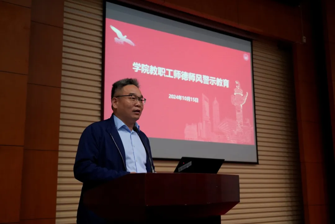 黄灿彬副书记作公司教职工师德师风和经费使用警示教育。他强调,在经费使用过程中教职工要严格遵守中央八项规定精神,不得违规套取科研经费;在师德师风方面,各位教师在日常工作中要守住底线,不踩红线,不碰高压线。