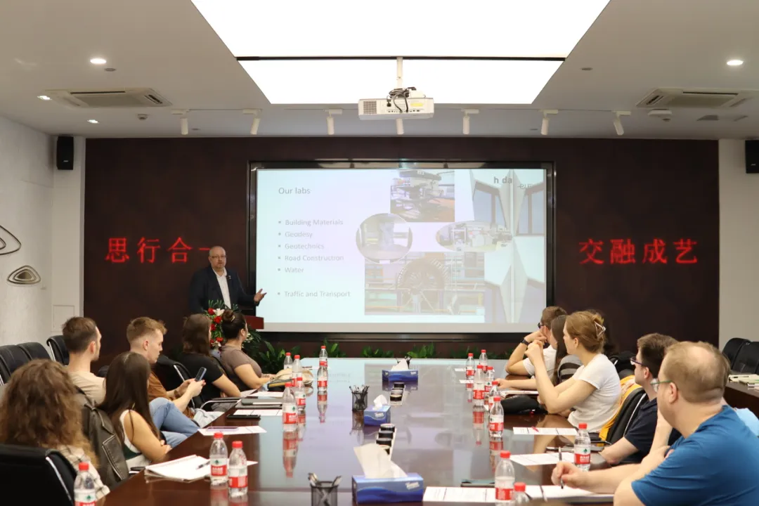 德方领队Mark-Simon Krause老师介绍了达姆施塔特应用技术大学的学科发展、特色活动、职工交换生培养方式,以及近年在交通、建筑、环境领域取得的主要研究成果。希望双方加强师生互访、长/短期交流,进一步深化在学术研究方面的合作。