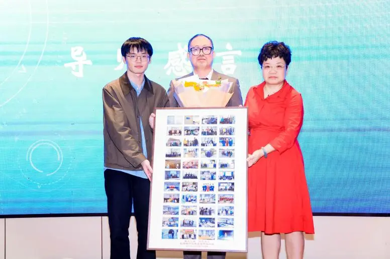 最后,杨新安教授门下的大师姐王红霞和最小的师弟戈志帆一起为杨老师送上了承载着全体员工点滴回忆的纪念品。员工们纷纷上前与杨老师亲切合照,一起记录下最珍贵的美好时刻。