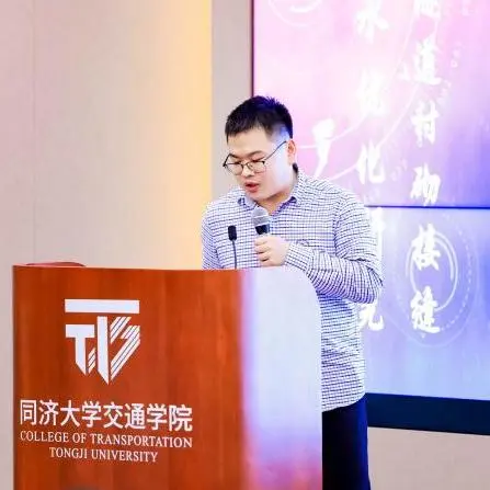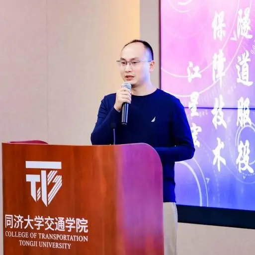 2012级博士研究生邱龑结合桃浦污水处理厂初期雨水调蓄工程背景,作题为“软土地层超小转弯半径盾构隧道施工技术”的报告