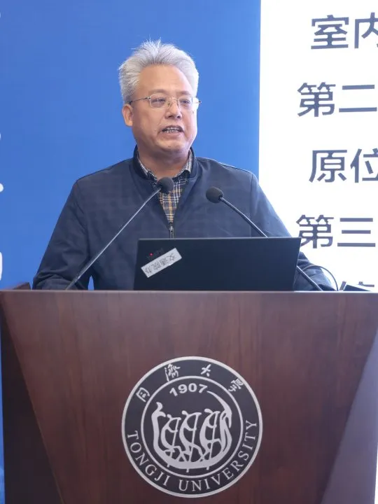 从左至右:长安大学陈建勋作《公路黄土隧道支护理论与技术》报告;重庆大学仉文岗作《石质文物保护中的交叉学科研究初探:以大足石刻和花山岩画为例》报告;河海大学高玉峰作《山区机场跑道高填方边坡三维稳定分析方法与加筋技术》报告;武汉理工大学吴少鹏作《钢渣沥青混凝土理论研究与工程实践》报告