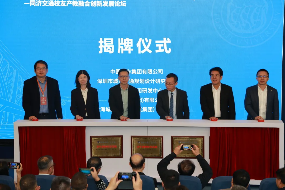深圳市城市交通规划设计研究中心股份有限公司副总经理杨宇星、东航技术应用研发中心有限公司副总经理李福娟、上海机场(集团)有限公司上海机场集团教育培训中心教务办主任王凯、公司党委书记马万经、中国中车集团有限公司总工程师于跃斌、上海城建城市运营(集团)有限公司总经理金恩共同为基地揭牌