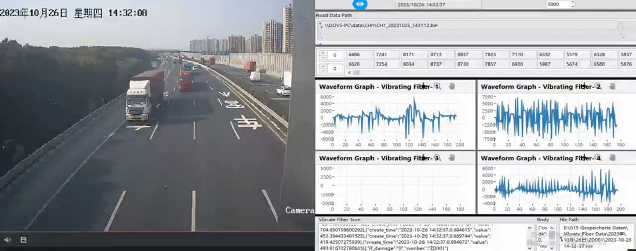 4) 交通荷载试验:在实际城市道路中埋入光纤传感器,记录移动载荷引起的动态应变,比较光纤与传统加速度计的测量结果。