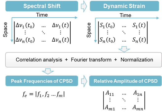 为了从分布式光纤数据中提取应变模式,本文开发了一种基于互功率谱密度(CPSD)的数据处理方法,包括以下步骤: