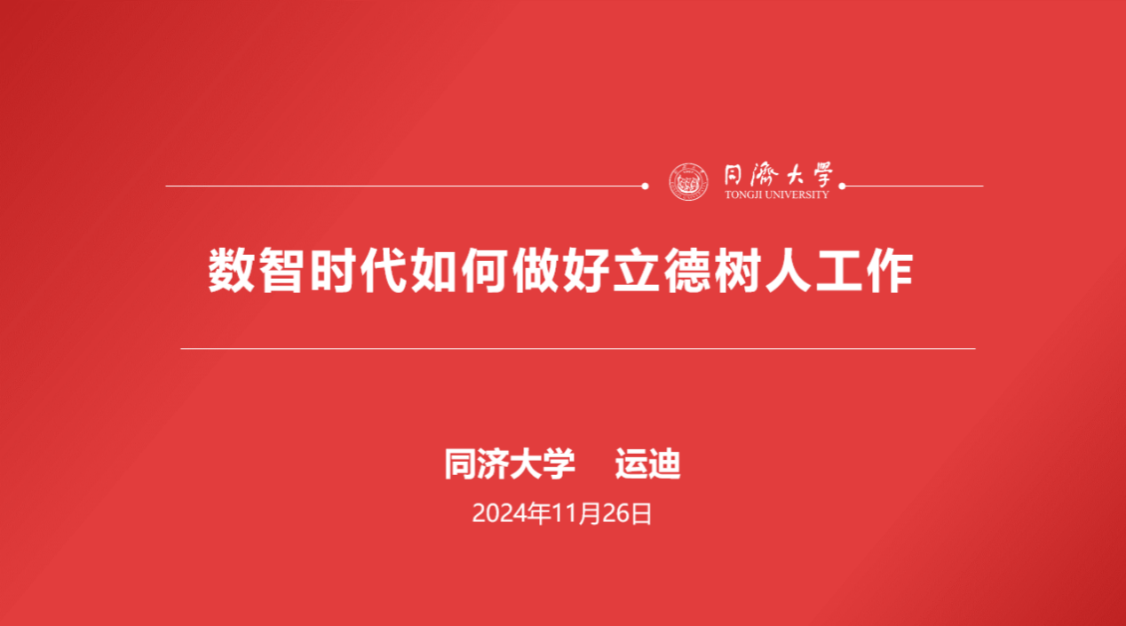运迪以《数智时代如何做好立德树人》为题,就新时代与新方位、数智时代的新挑战分享了自己的思考,并作师德师风失范案例警示教育。
