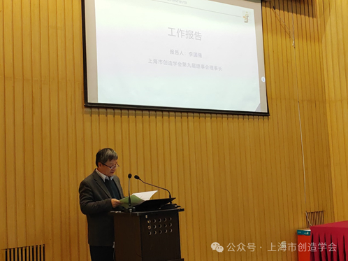 第九届理事会理事长李国强教授作第九届理事会工作报告,他指出,学会在过去的四年里,克服种种困难,砥砺前行,在学会三创(创造杯大赛、创造论坛、创造平台建设)工作上不断进步,取得了较好的社会影响力;学会大力发展专委会建设工作,目前已拓展到11个专委会;学会积极组织各种规模的活动,为社会做出相当有影响的贡献。随后,监事会主席朱建新做监事会工作报告。秘书处分别就理事会工作、财务收支、学会《章程》的修订草案、换届选举工作方案及相关办法等进行了详细汇报,全体会员一致审议通过。