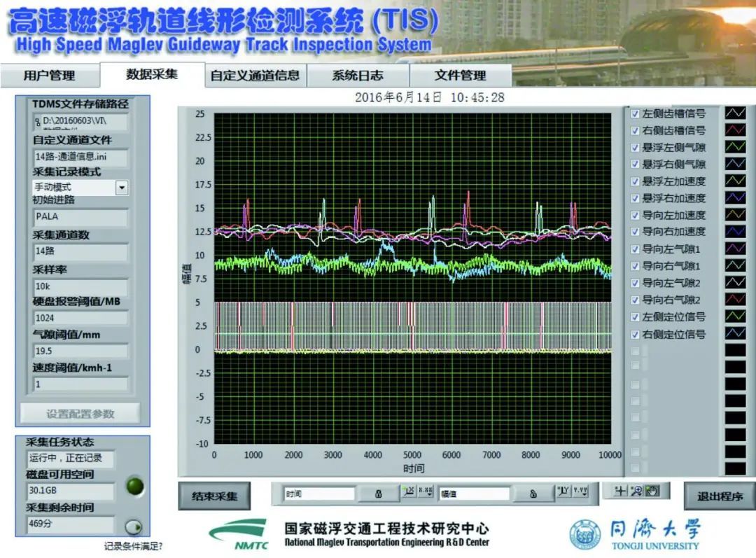 在线路轨道技术应用方面,成果已经成功应用于多个磁浮工程项目。磁浮中心研发的磁浮道岔及控制系统,率先完成从设计到现场调试技术突破,并应用于青岛高速试验线、长沙中低速磁浮线,显著提升了磁浮列车运行的平稳性和可靠性,为中低速和高速磁浮系统的可靠运营奠定了坚实基础。在轨道检测技术方面,团队自主研发的新一代轨道线型局部偏差检测设备,实现了检测精度0.01毫米的突破,实现轨道线型的全面检测和高效分析,被广泛应用于上海磁浮列车示范运营线的轨道检测与维护任务,不仅提高了运营维护效率,还有效降低了维护成本。此外,团队构建的轨道状态监测和评估平台,通过“车载—在线—在轨”多源数据融合技术,全面实现了对磁浮线路长期服役状态的智慧化动态监测,为线路运维和优化提供了科学依据和决策支持。