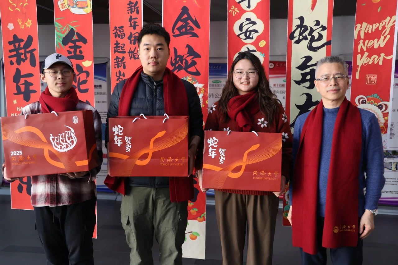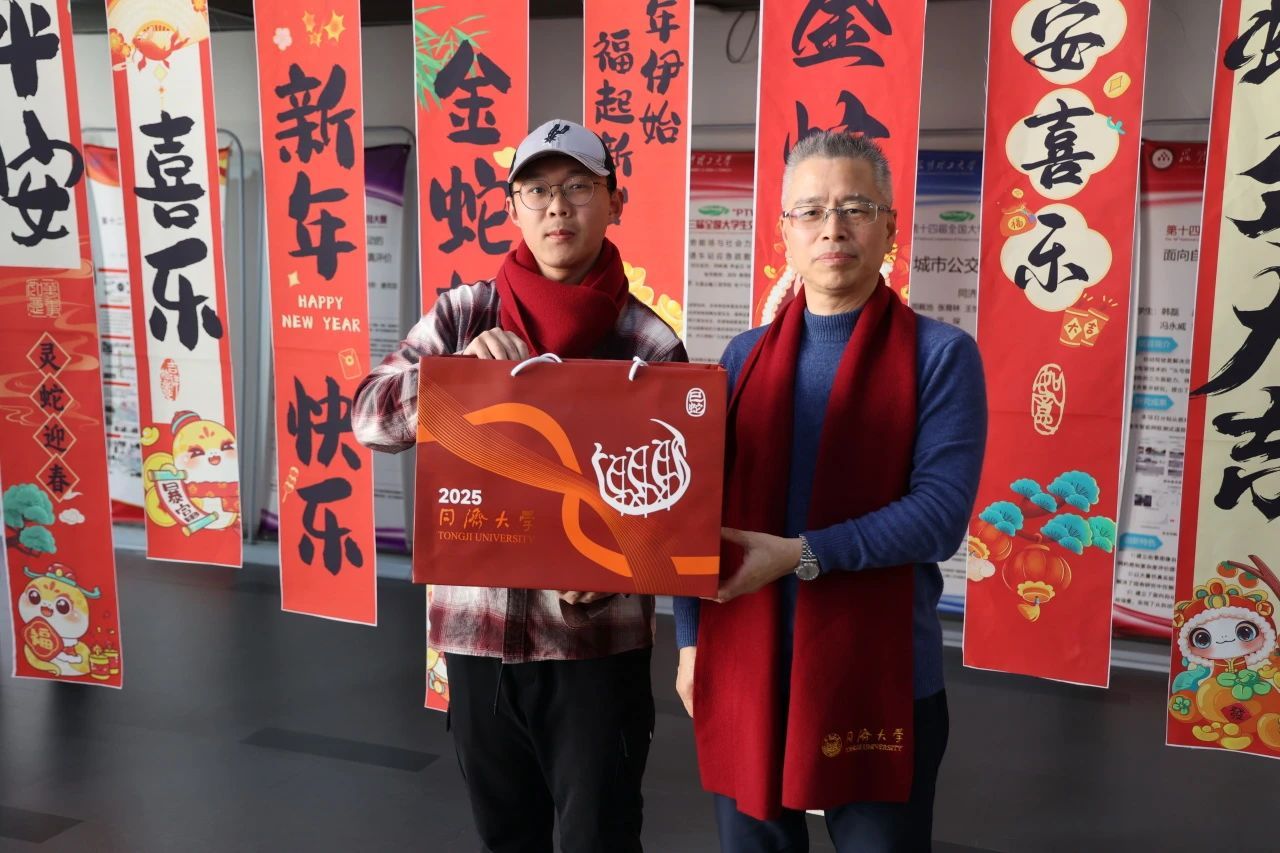 公司经理凌建明教授代表公司,为留校员工代表赠送新春大礼包,传递公司对同学们的关心关爱、寄托公司对同学们的暖心暖意,希望同学们在留校的日子里,真切感受来自交通大家庭的温暖。留校员工代表们接过这份沉甸甸的礼物,纷纷表达了内心的感激之情,这个假期虽然不能与家人团聚,但公司的关怀让他们感受到了家一般的温暖。