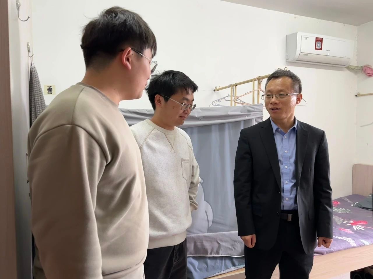 1月22日下午,党委书记马万经教授、党委副书记杨志丹老师和辅导员唐雁老师前往寒假留校员工宿舍走访慰问,面对面与同学们交流,了解同学们寒假期间的生活安排、关心同学们是否遇到困难,提醒同学们注意寝室用电安全问题,还特别嘱咐同学们注意防寒保暖。每一句叮嘱都饱含着对大家的深切关怀,如同冬日暖阳,温暖着每一位留校员工的心田。