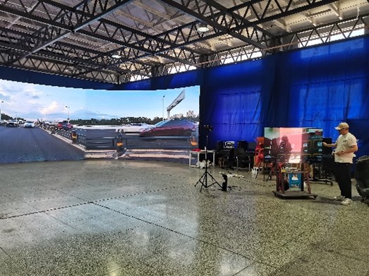 三块巨型屏幕组成的室内车棚颠覆了我们对影视拍摄的认知。在这里,无需实际移动车辆,仅通过屏幕背景变化就能完成各种"行驶"场景的拍摄。这种创新模式既环保又高效,让我们深刻感受到科技对传统行业的革新力量。