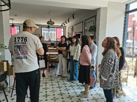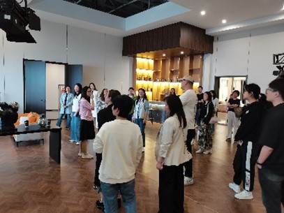 在讲解员的引导下,我们走访了园区内多个主要拍摄场景。无论是棚拍区域还是实景布置,都展现出高度的专业性与鲜明的艺术特色,不仅细节丰富、创意十足,还为不同团队预留了个性化布置的空间。中心内集成了住所、咖啡厅、办公室、医院等多类型拍摄环境,还配有车棚拍摄系统,能够满足短视频拍摄的多元需求,显著提高拍摄效率、降低制作成本。通过专业讲解,我对短视频的拍摄流程、制作机制以及中心的运营服务有了初步了解。这次实地参访让我对新媒体行业的运行逻辑有了更清晰的认识,也激发了我对该领域进一步探索的兴趣,收获良多。