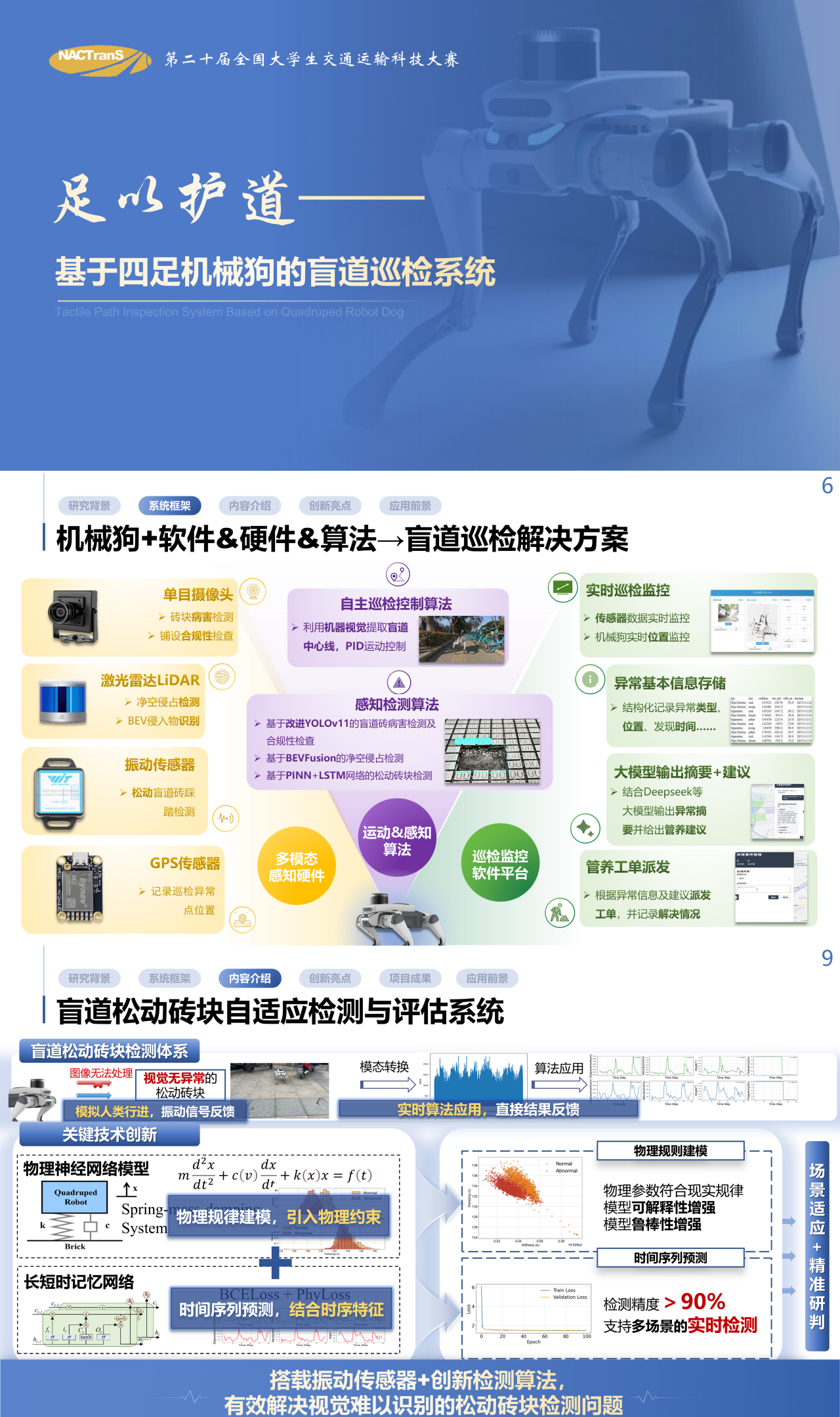 获奖团队:由杜豫川、刘成龙老师担任指导教师,王恩泽同学担任负责人,王月超、杨千浔、林海和罗金泽同学参与的“足以护道——基于四足机械狗的盲道巡检系统”项目