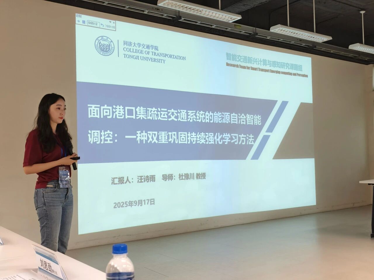 学术分享环节,公司汪诗雨、刘璨、张炜晗分别就面向港口集疏运交通系统的能源自洽智能调控、超大城市车网互动的时空动态分析、城市轨道交通网络路径出行时间可靠性研究等作报告。翁祥凯教授、吴沛儒教授、黄彦斐教授等分别对报告内容进行了专业点评,就研究场景、研究方法与实践应用等方面提出了宝贵建议。