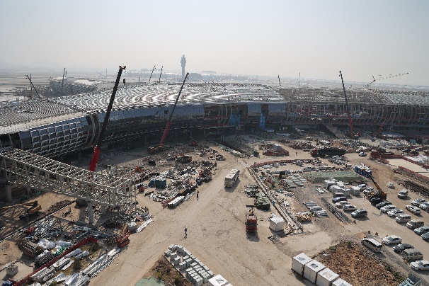 6日上午,实践团队来到深圳机场扩建工程施工现场,实地考察深圳机场卫星厅、第三跑道及T4航站楼等扩建工程。深圳机场在国内机场中率先应用BIM(建筑信息模型)技术进行施工建设管理,解决钢结构施工技术难点,有效助力卫星厅项目施工又好又快。随着最后一根桁架钢梁缓缓起吊、精准拼接,深圳机场卫星厅钢结构工程实现全面封顶,施工工人已经开始着手进行卫星厅的大面积室内室外装修,预计2021年交付使用。