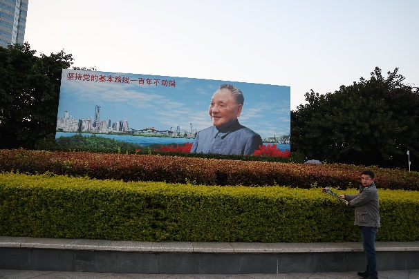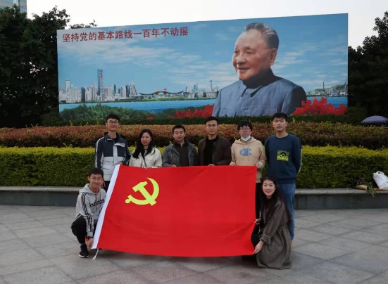 今年是深圳经济特区建立40周年,为推进“四史”学习教育,感受改革开放以来深圳发的巨大变迁,12月5日上午,实践团队来到莲花山顶,瞻仰广场中央的邓小平雕像。雕像里的邓小平身披风衣,极目远方,俯瞰着深圳的发展与巨变。顺着他的目光望去,幢幢高楼大厦鳞次栉比,透着无限活力。