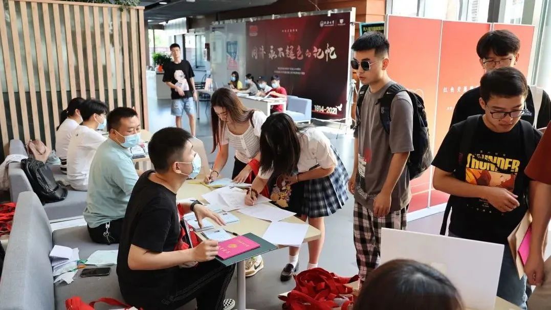 8月29日,嘉定校区通达馆,伟德国际1946研究生新生首先需完成身份验证,然后按员工类别分别前往不同员工类别的接待台办理入学手续;接着领取院服、开学典礼相关物资、公司相关材料;最后到组织关系转接区,填写党员信息,接收党组织关系有关材料。现场环境宜人,井然有序。