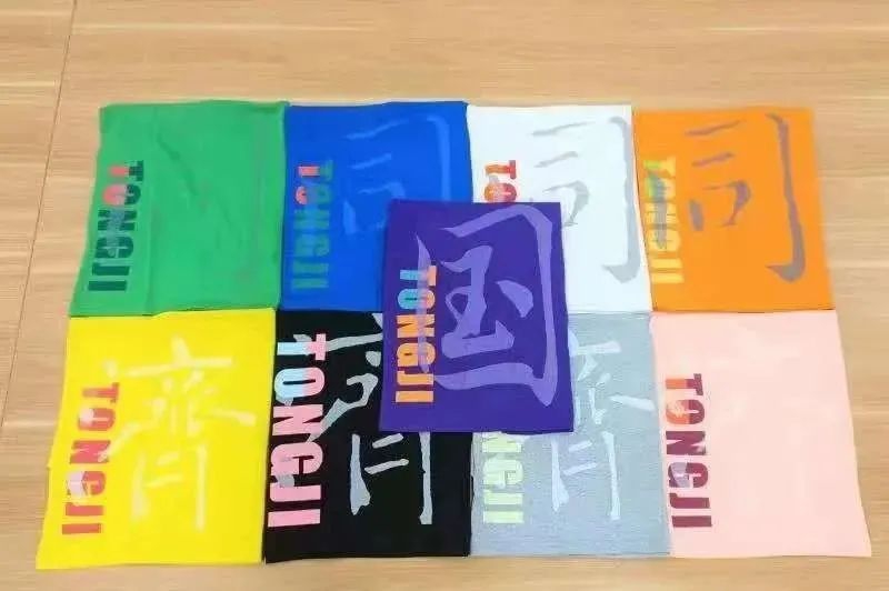 继今年红遍全网的同济录取通知书以外,新生院九大学堂还为2021级本科新生准备了不同颜色的纪念衫,粉、橙、黄、绿、蓝、紫、黑、白、灰,九大学堂的T恤衫颜色各异、相互衬托,映照出2021级同济最新鲜力量的蓬勃朝气。