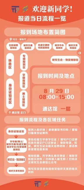 8月28日7时48分,四平路校区衷和楼,第一位2021级智能交通与车辆大类的本科新生办理报到手续,智能交通与车辆大类开始迎来又一批“萌新”。
