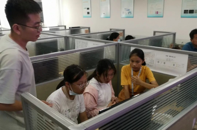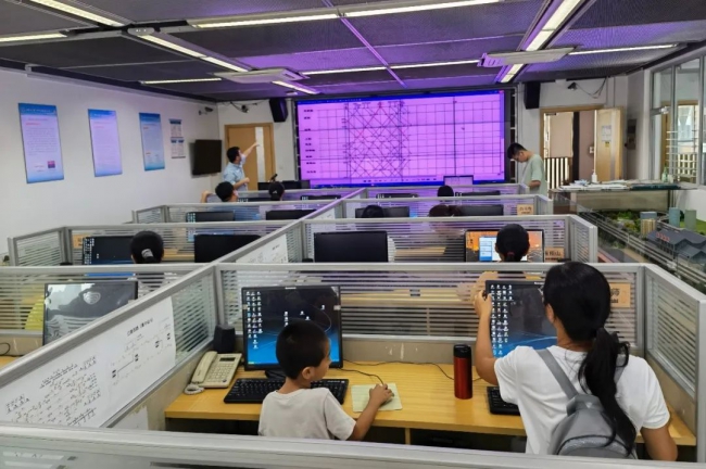 之后是下午的列车接发车实验体验。指导教师为大家讲解了铁路接车接发的基本知识,对“小小车站值班员”进行培训,使大家对各自扮演角色的职责、任务和操作有了初步认识。虽然孩子们一开始实验时还是有点手忙脚乱,但是在指导教师和助教的帮助下,很快便成为了一名合格的车站值班员,接发列车有条不紊。通过这个实验,孩子们深刻认识到了铁路列车运行的复杂性和保证铁路列车运行安全、准点的重要性。