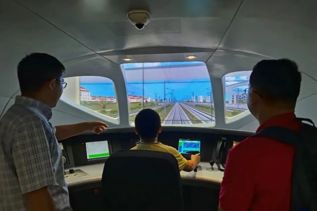 参观第三站:轨道交通系统仿真实验室,认识轨道交通运营管理相关知识。周峰老师带领大家参观了沪杭高铁沙盘和和谐号动车组模拟驾驶器,孩子们学习了列车运行与驾驶、列车调度指挥的相关知识,并通过仿真驾驶实验,扮演了一次高铁列车驾驶员的角色,体验了不同场景下高铁列车的模拟驾驶。全方位身临其境的逼真场景,使得孩子们大开眼界,惊叹连连,寓学于乐。