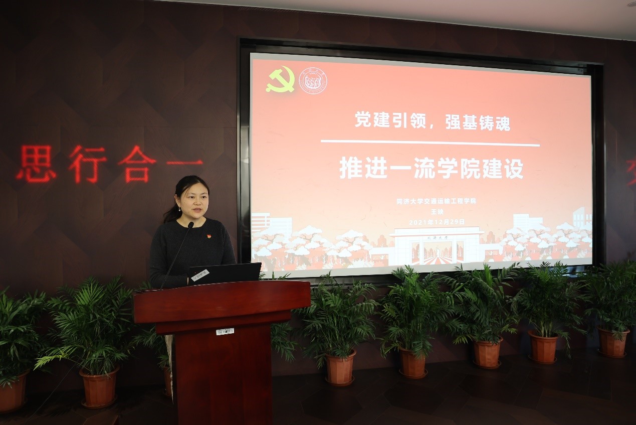 公司党委副书记王映从十九届六中全会发布的《中共中央关于党的百年奋斗重大成就和历史经验的决议》序言中党的初心使命出发,简要回顾了同济交通百年“与祖国同行,以科教济世”的历程,介绍了公司党委构建以党组织为领导核心、党政学术协同治理、多方面协调监督的基层治理结构,建设基层治理的领导、决策、执行、监督四方面机制,深入推进全面从严治党,严格落实“四责协同”;以“三全育人”为抓手,构建思政课程与课程思政同向同行、社会实践与科创竞赛相生相长、学科文化传承与同路人文化建设互促互进的三圈层育人体系;加强榜样教育品牌建设,以师生员工先进榜样激励人;在党史学习教育方面中领导干部带头讲、专家学者深入讲、身边普通党员讲,并结合上海市五大新城建设等契机与合作单位联学共建,组织师生赴嘉定9路公交车打造“星火专线”移动党课讲堂等举措