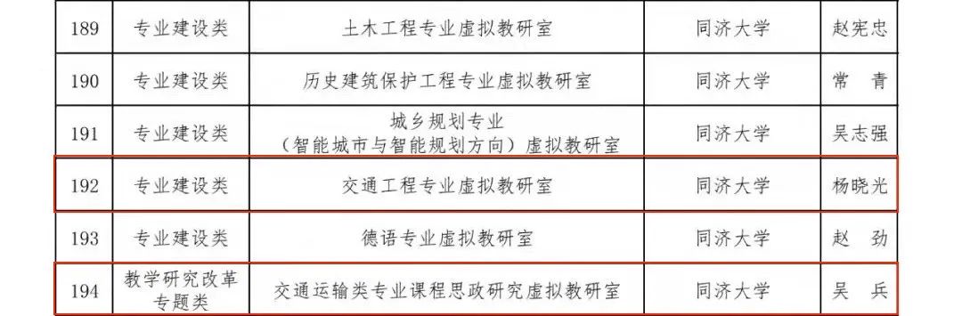 全校获批的9个虚拟教研室中,公司获批两个,分别为杨晓光教授带头的“交通工程专业虚拟教研室”、吴兵教授带头的“交通运输类专业课程思政研究虚拟教研室”。其中,“交通运输类专业课程思政研究虚拟教研室”是全国获批的为数不多的课程思政类虚拟教研室,凸显了公司在课程思政领域长期以来的积累和成果,为公司牵头的“高校交通运输类专业课程思政联盟”持续深入发展提供了新的契机。